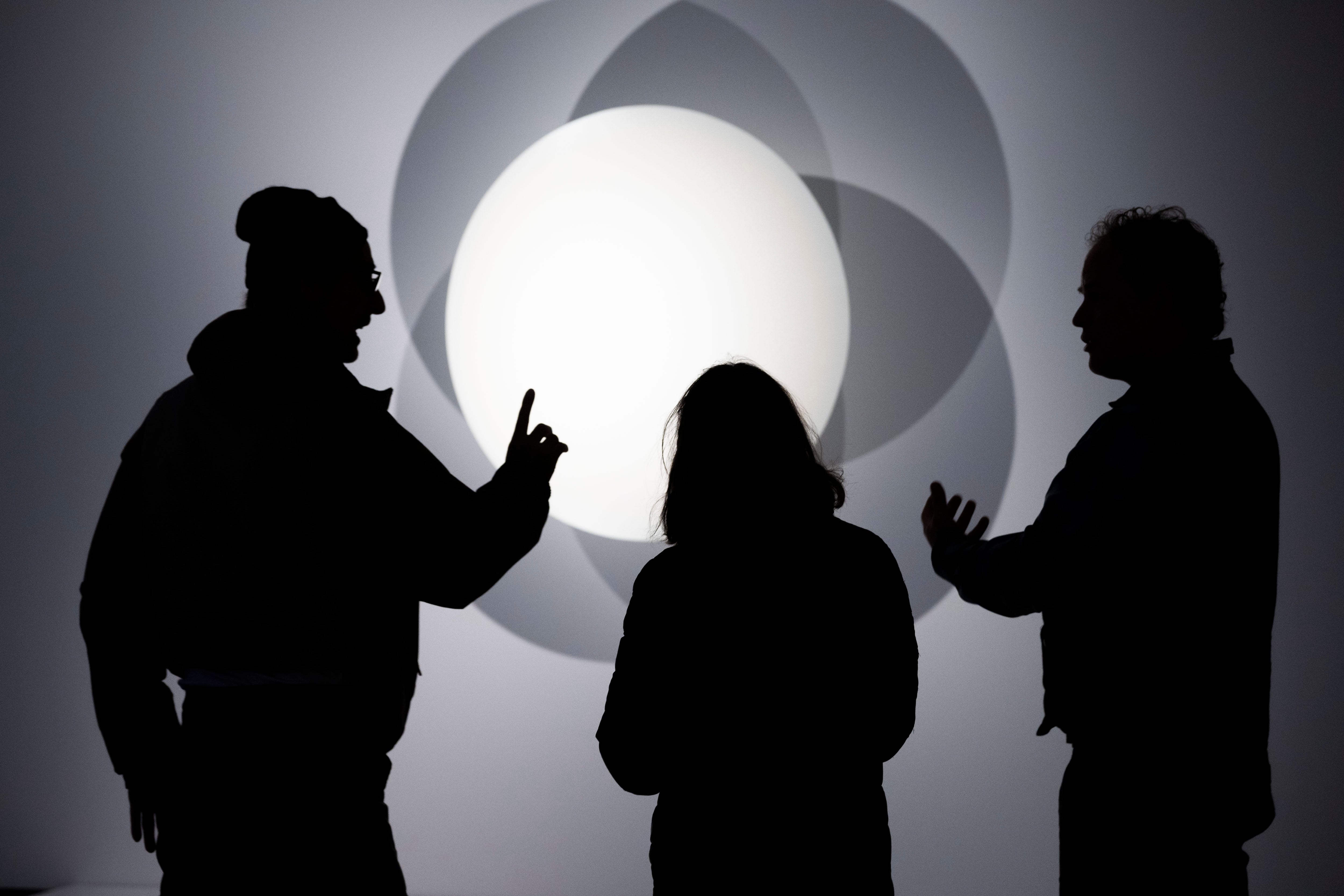 Robert Irwin’s sprayed-enamel-on-aluminum disc, which had long been on museum display before the renovation, is reimagined — and given new interest and intrigue. Uplighting creates shadows and provokes new opportunities for discussion and debate. Is that disc flat? Yes? No? Walk over to the wall and discover for yourself.