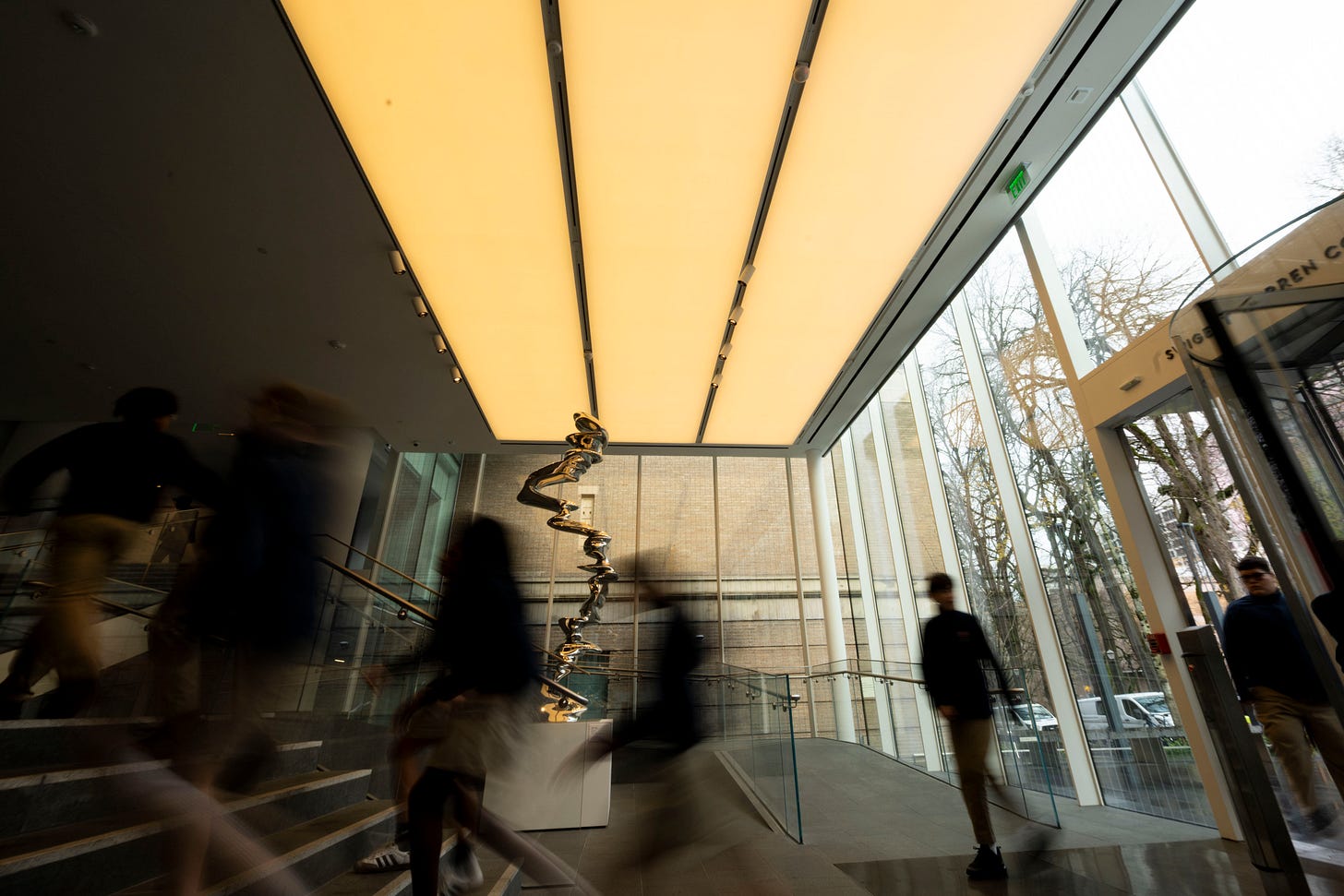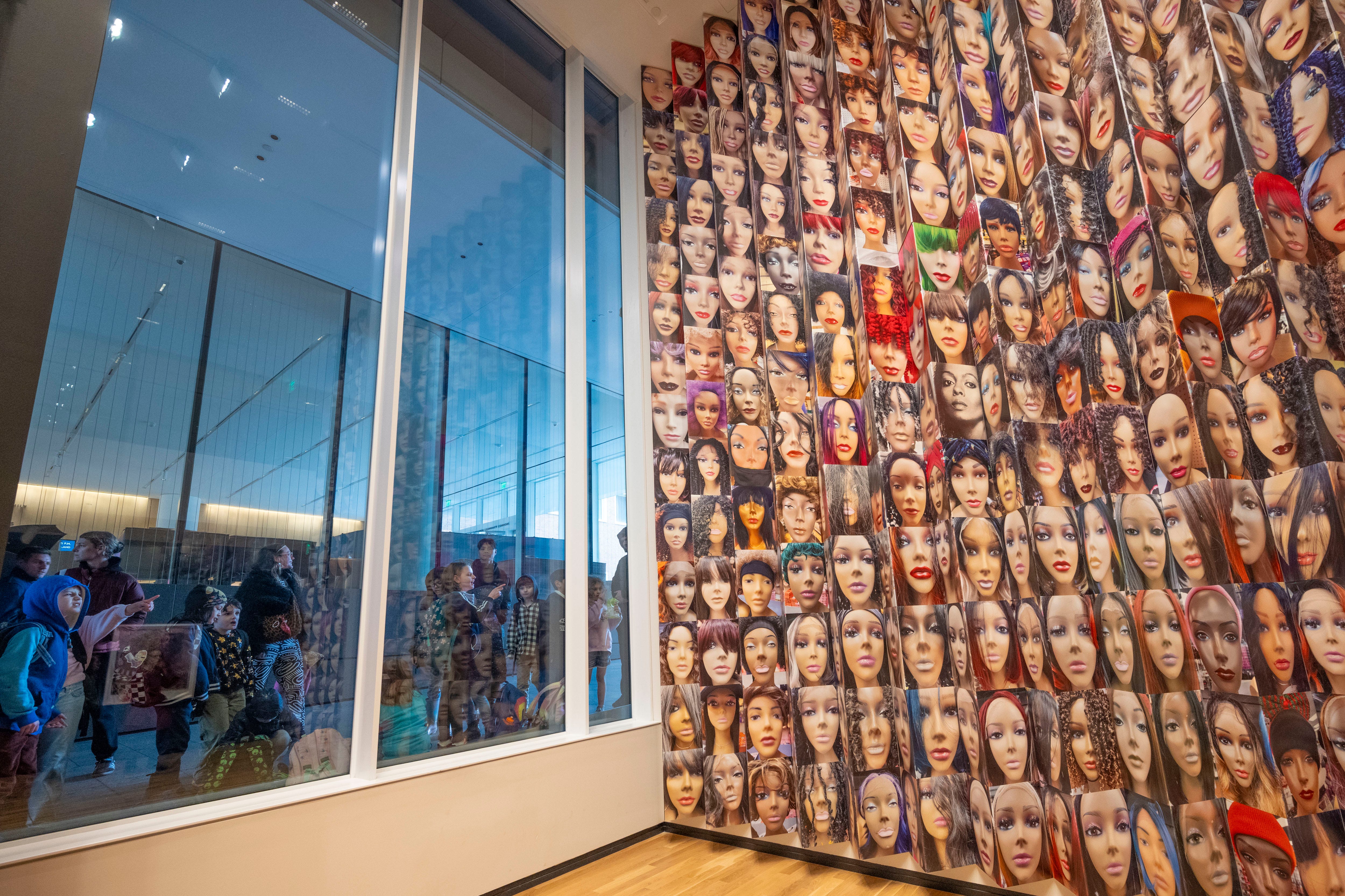 One of the coolest things about the museum? You can catch some of the art for free. The rebuilt public breezeway next to the Rothko Pavilion has huge picture windows that let visitors peer into one of the galleries. Here a bunch of school kids stop to ogle and point at Lisa Jarrett’s 2025 floor-to-ceiling piece entitled “503 Wig Mannequin Portraits and 1 Portrait of Diana Ross.” Even if the museum is closed, and the streets are dark, the gallery with Jarrett’s work has the lights on 24/7 for your viewing pleasure.
