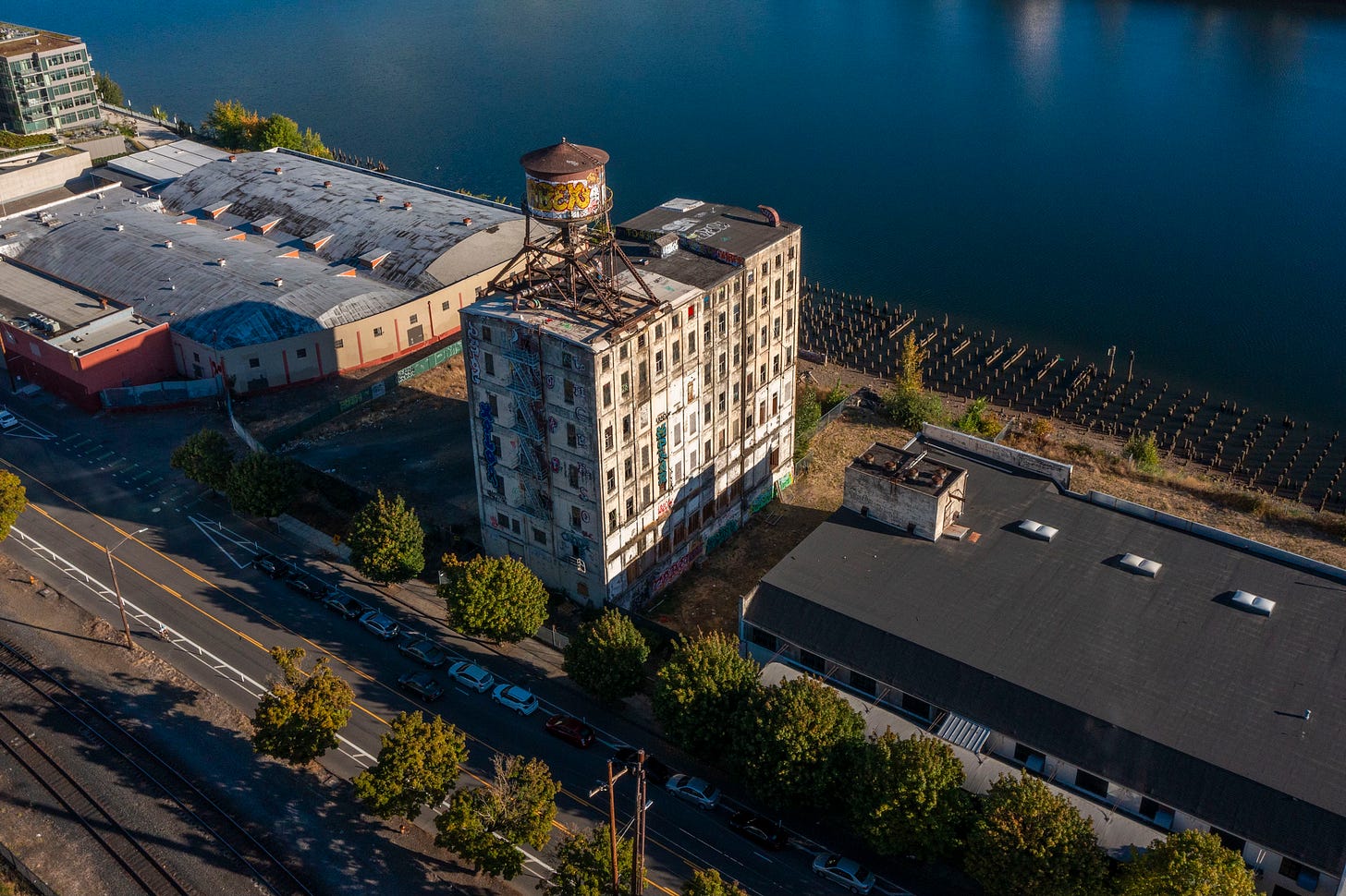 The Centennial Mills complex was built in 1910, originally as Crown Mills, and operated for nearly 90 years producing flour and grain products. Then-owner Archer Daniels Midland (ADM) closed the mill down in the late 1990s. The building has been empty and abandoned since, and has been a magnet for graffiti and vandalism. Photo atop story and video by Walden Kirsch.