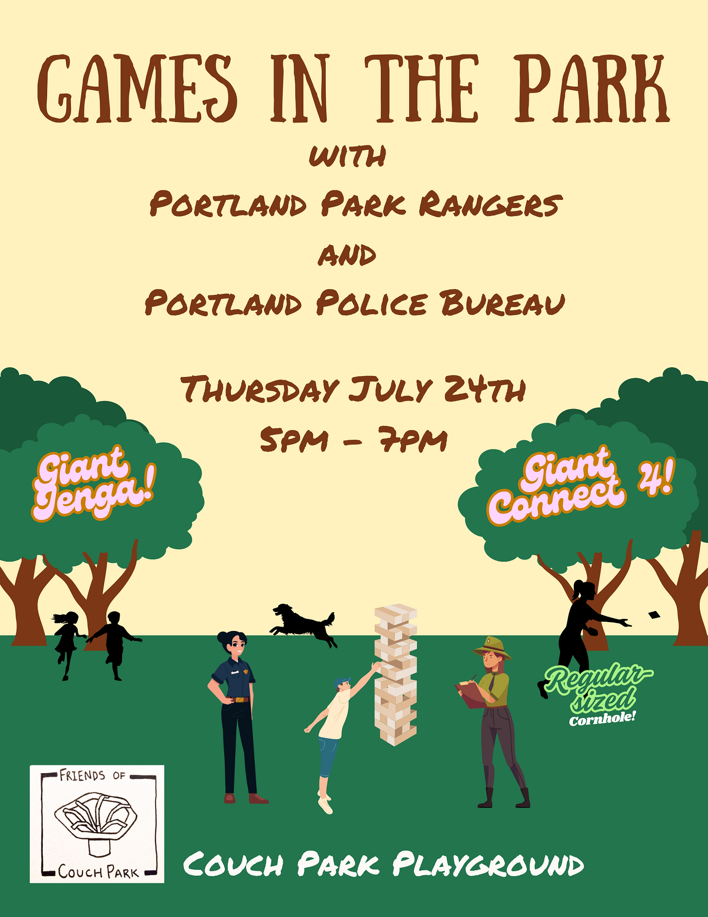 This a weird idea of mine that took way too long to get off the ground. It will be one of our regular Games in the Park days but with special guests: Portland Park Rangers and the Portland Police Bureau.