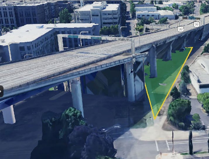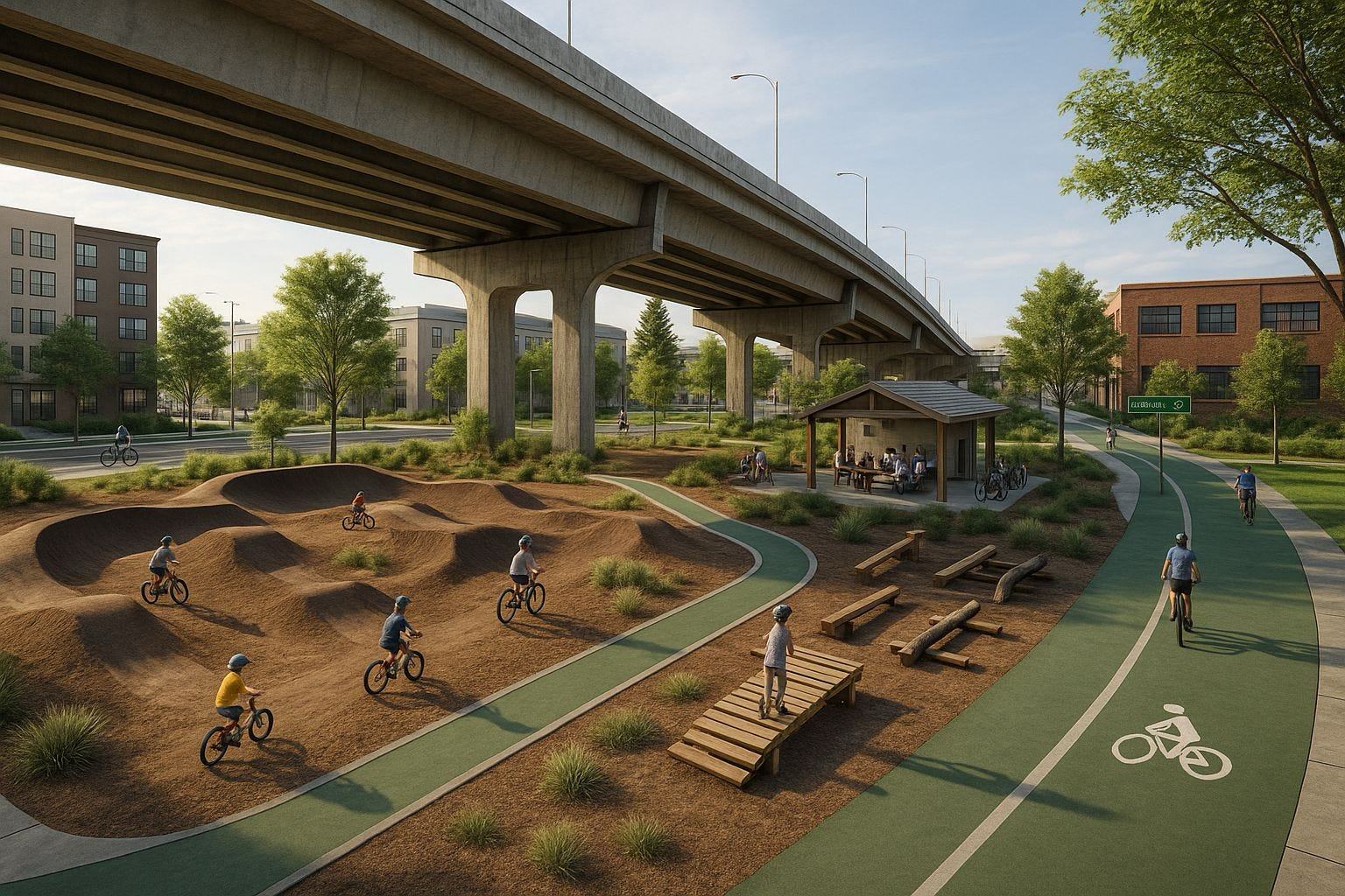 Jon Lindquistt, who moved to Slabtown five years ago, has an idea for the “wasteland” under the Interstate 405 freeway ramps. He envisions a “pump track” for bicycle riders of all skills along Northwest Thurman Street, where campers, drugs and fires have taken over in recent years.