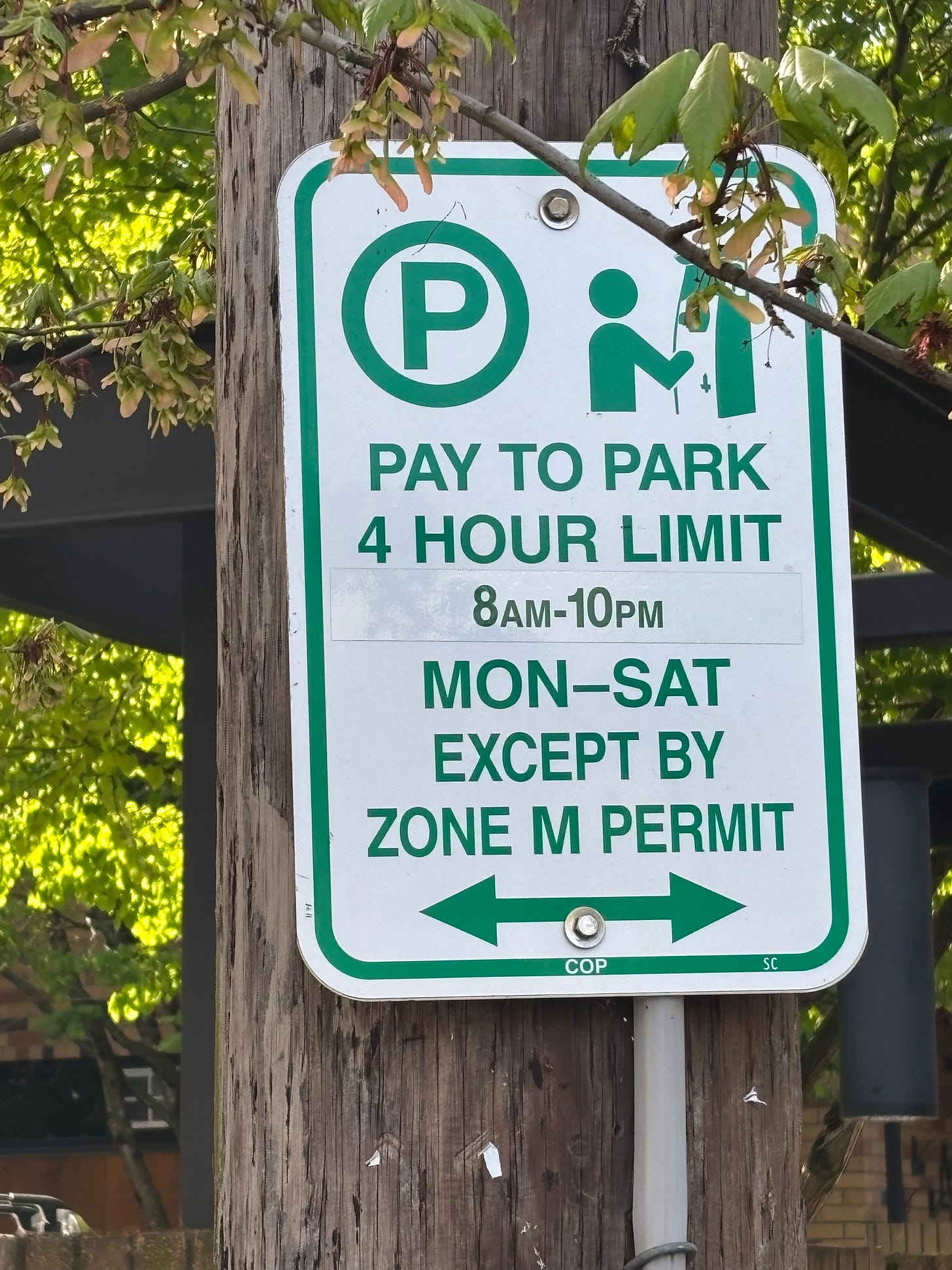 “Compounding the frustration is the city’s failure to correct the street signage. For several months, parking meter signs throughout the Northwest District have incorrectly stated that enforcement extends until 10 p.m. The parking signage is complex in its current form, and now adds additional hurdles for visitors in that the signs are both complex and wrong.”