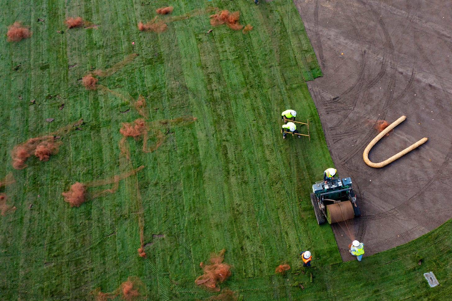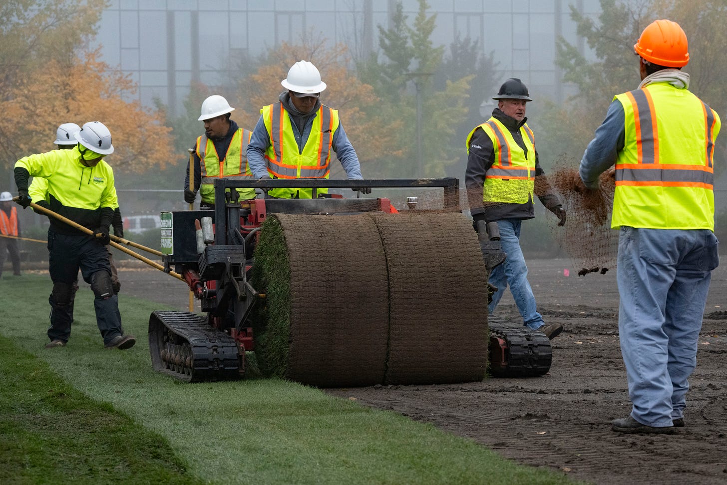 Curious to learn more? Like, as one passerby asked this morning, why not just toss down some grass seed? For the answer to that question, and other riveting sod trivia, see photos and captions below.