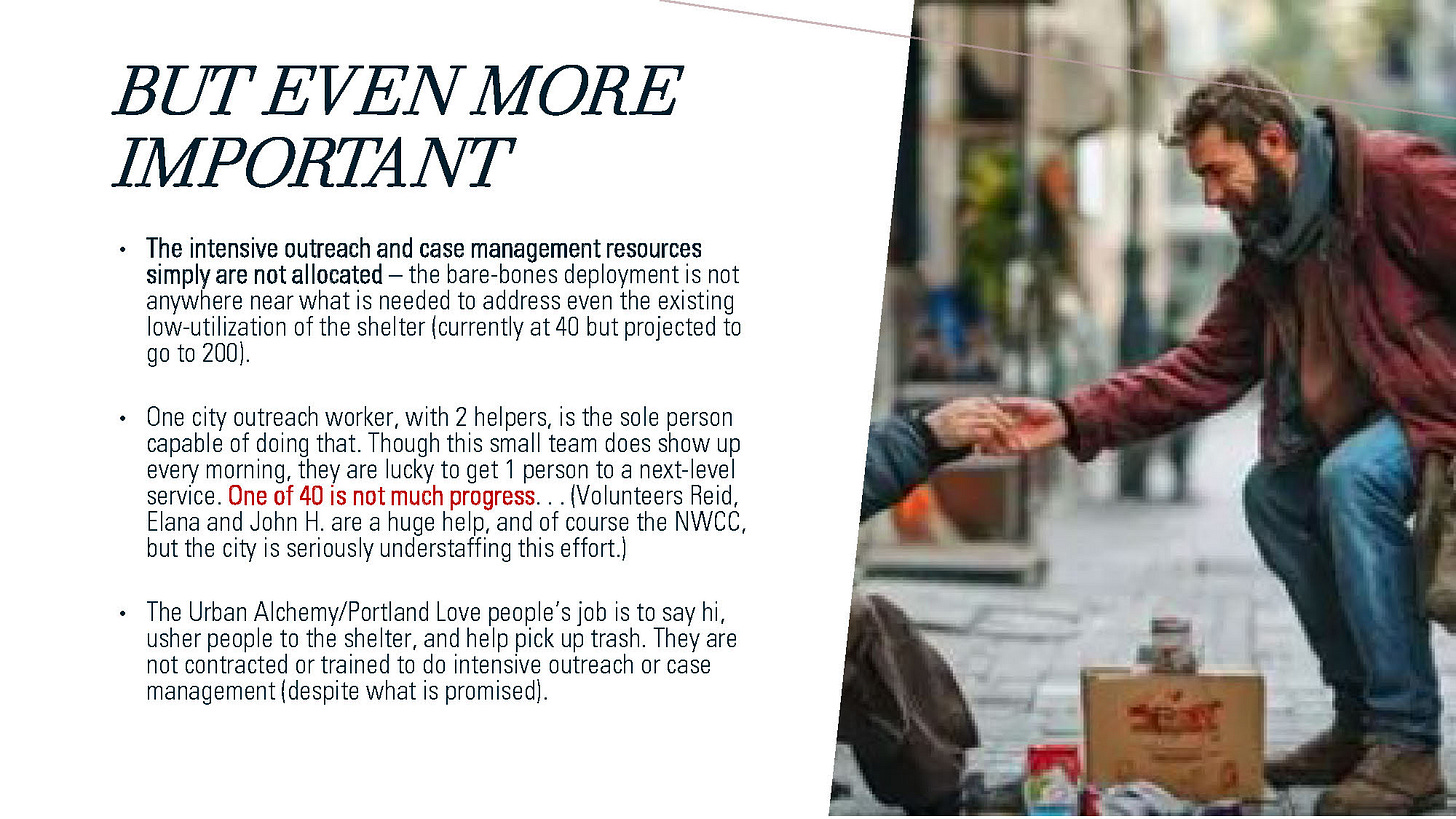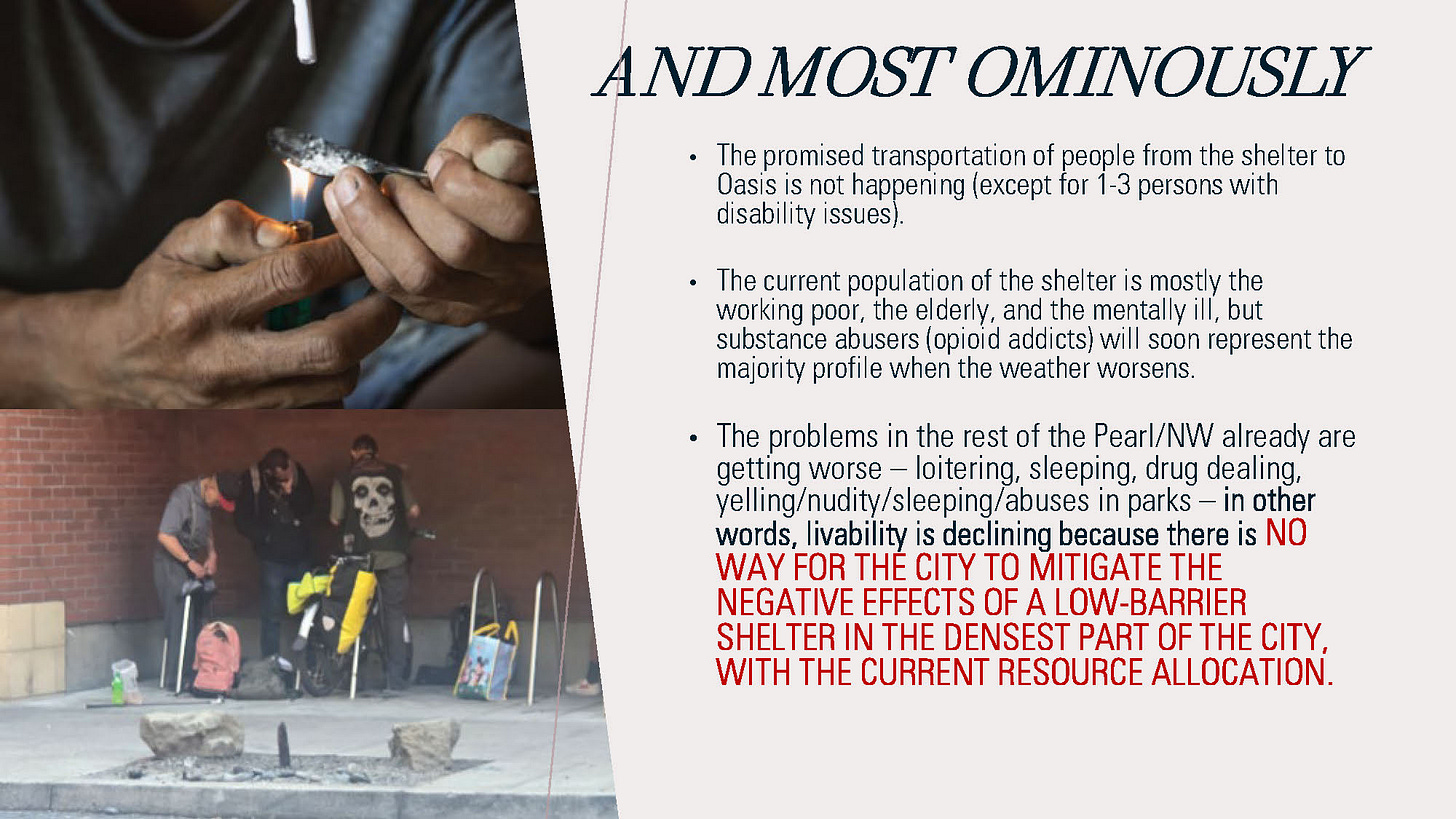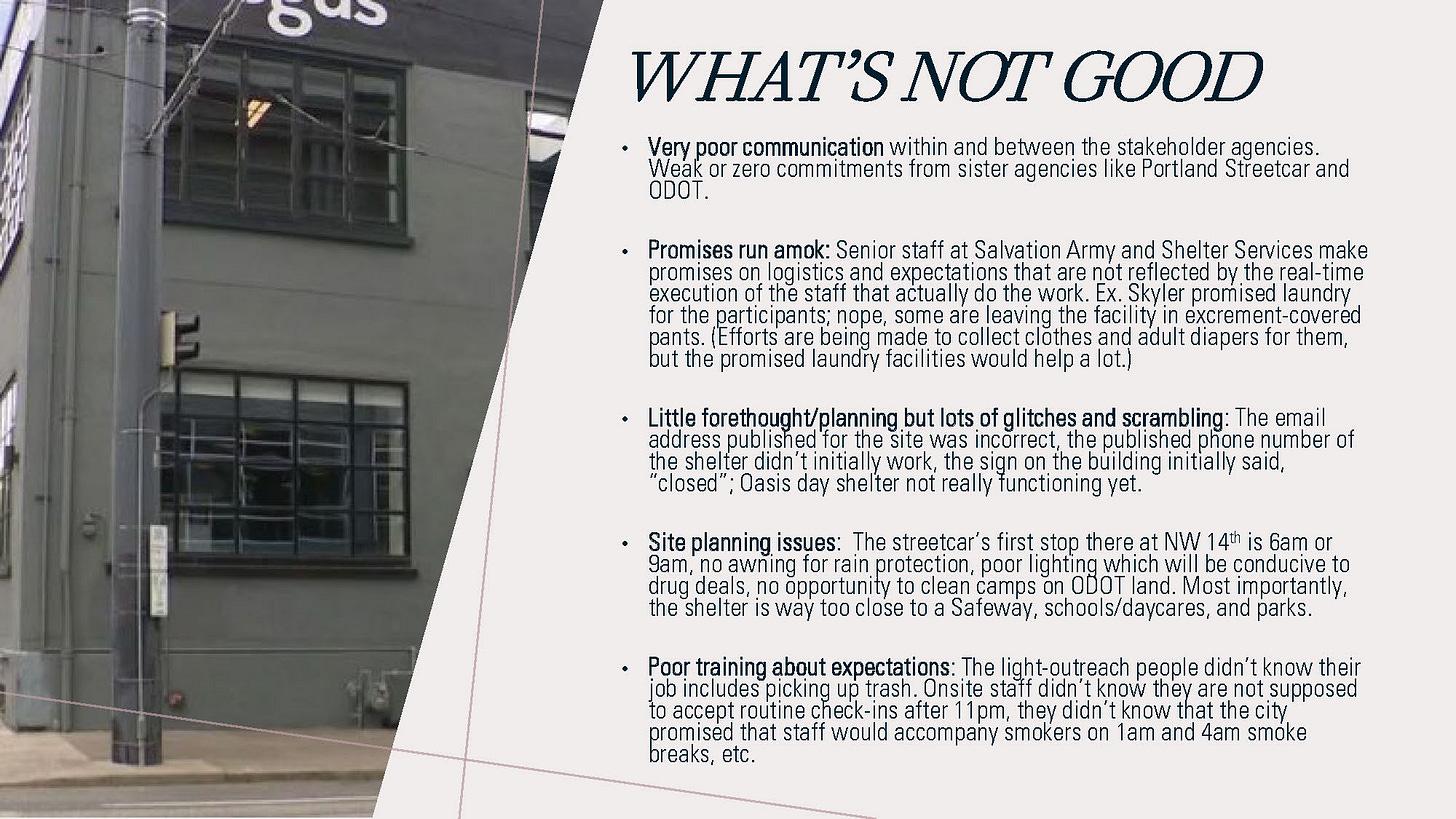 Portland is taking the drug addiction / homeless problem and spreading it around to our nicest neighborhoods. Remember this is with just 40 low-barrier beds, they are going to jump to 200 pretty soon. What a mess. Heartbreaking to watch and hear about with more of the same planned for a neighborhood near you. Please!! Stop This Madness