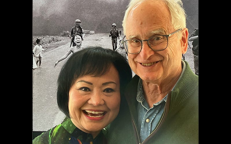 Kim Phuc and family ran toward them. Butterfield’s photographer, at the far right in the first photo above, had run out of film and was reloading his camera at that moment. Later that day, back in Saigon, Butterfield went to the Associated Press office to see what photographs it had. He remembers the first time he saw that powerful photo depicting the terror of war.