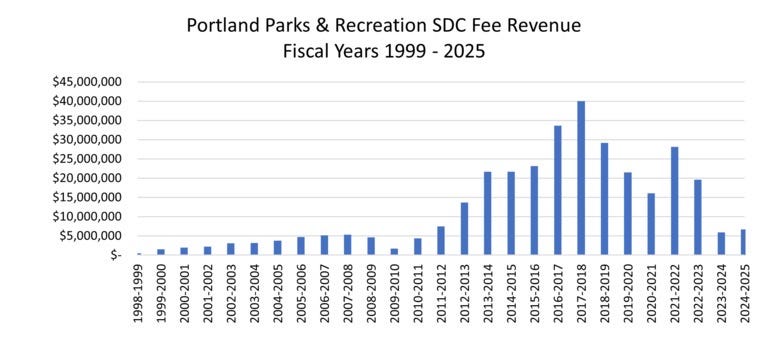 It should be noted that the FY 25 SDC balance was about $119 million. While unclear to me, it may be that a portion of that- if not the entire amount- has already been allocated to new projects, such as the North Portland Aquatic Center.