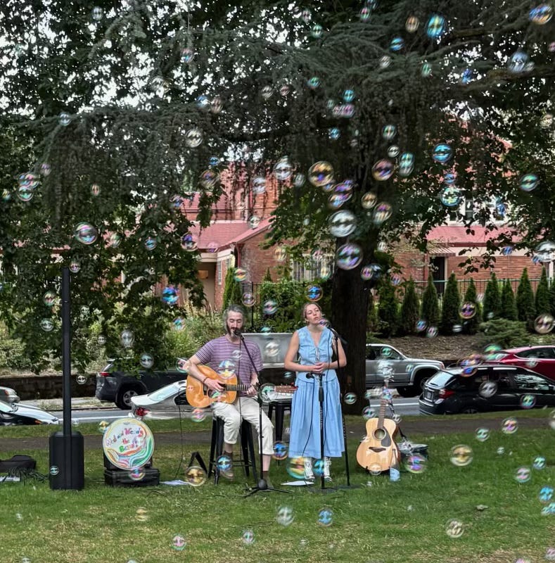 “We used to live on 21st and Everett, and our first day in town we made our way over and found the park. It ended up being a beautiful show. So many friendly faces, a giant bubble wand, the wind was blowing just perfectly.”