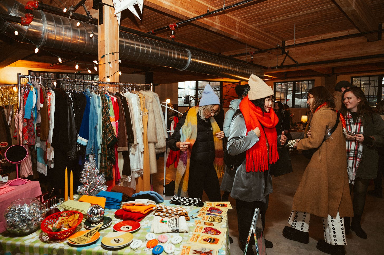 “People want to hang out and they want to have an experience, so we’ve added more food and drink this year,” said Jenna Winkler, a Portland Bazaar organizer. She and her business partner, Delia Tethong, launched Portland Bazaar in 2011. Five years ago, they expanded the event to run for two weekends during the holidays, which vendors prefer because they can leave their elaborate stalls up for the duration.