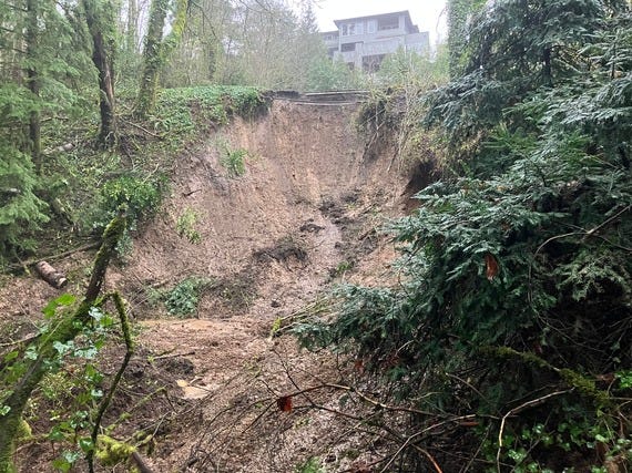 Another mid-month landslide created a sinkhole under Cornell between Northwest Thompson and Skyline Boulevard, where that section of the road remains closed.