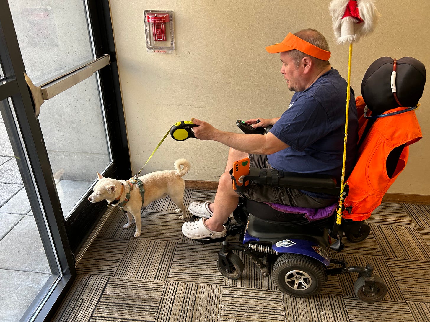 But today is a day he looks forward to: A Trimet Lift van will take him and Silver to WinCo on Southeast 82nd Avenue for their monthly shopping trip. Afterwards, they go to Kentucky Fried Chicken for dinner.