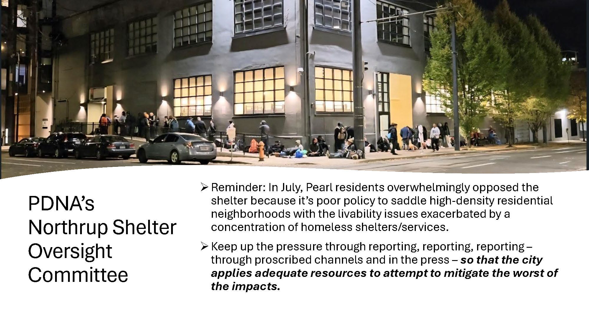 This report, submitted by the Pearl District Neighborhood Association Shelter Oversight Committee on Nov. 5, is the third installment of its work to monitor the community impact of the Northrup Street Shelter, which opened Sept. 2.