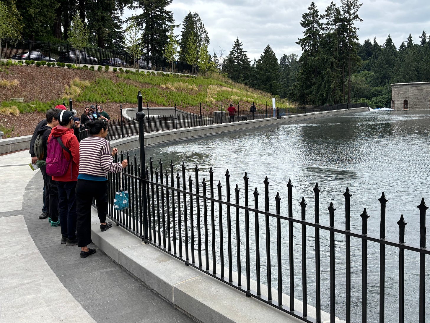 Portlanders got a sneak peek of the Washington Park Reservoir, or rather the reflective pools on top of the 12-million-gallon underground tank containing the “real water” that supplies homes and businesses today. Six hours of festivities, tours, speeches, giveaways and vendor booths ends at 4 p.m.