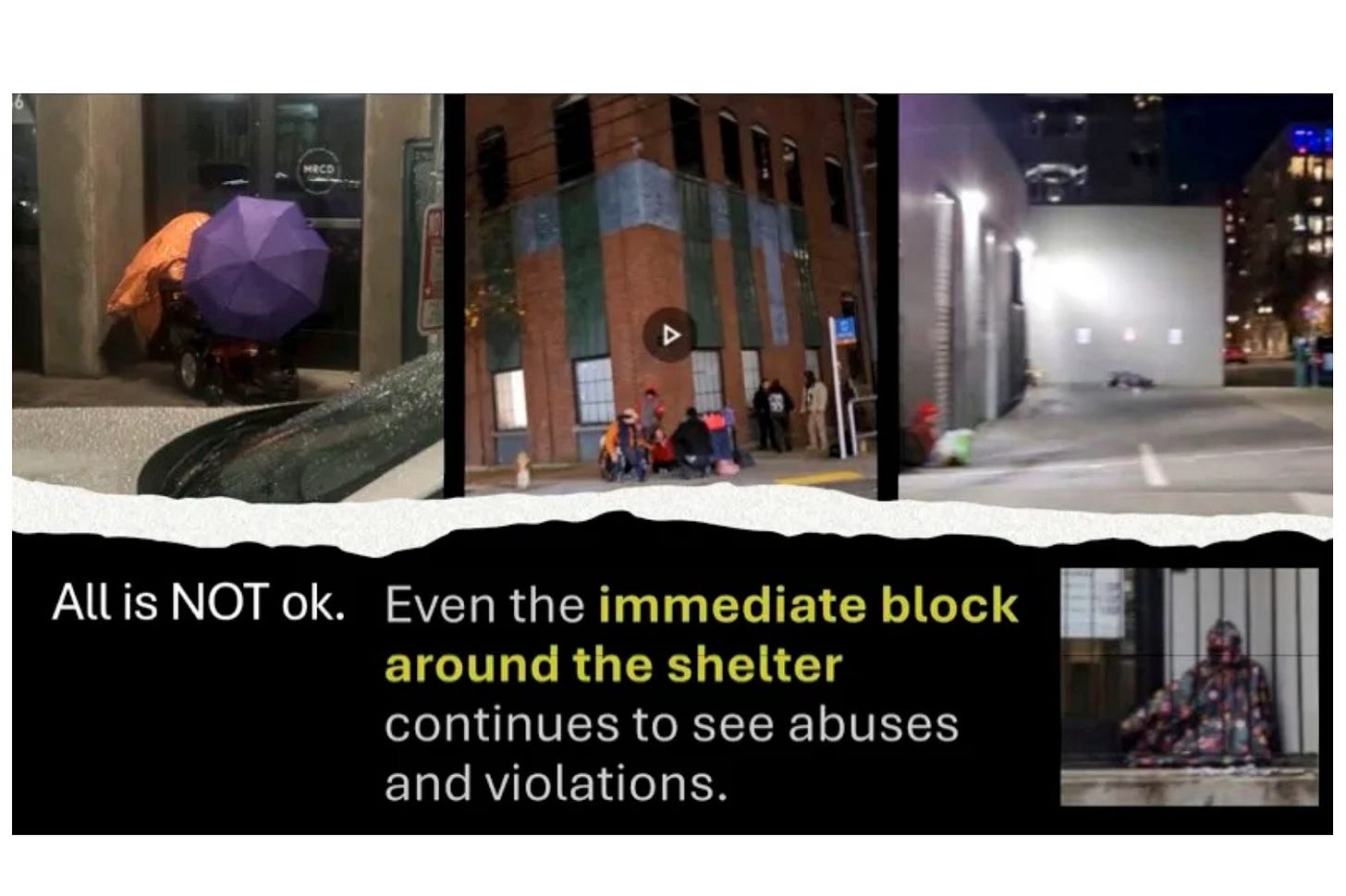 “Very disturbingly, we’re seeing excessive sleeping, watering, etc., in violation of the community engagement guidelines, even around the shelter itself.