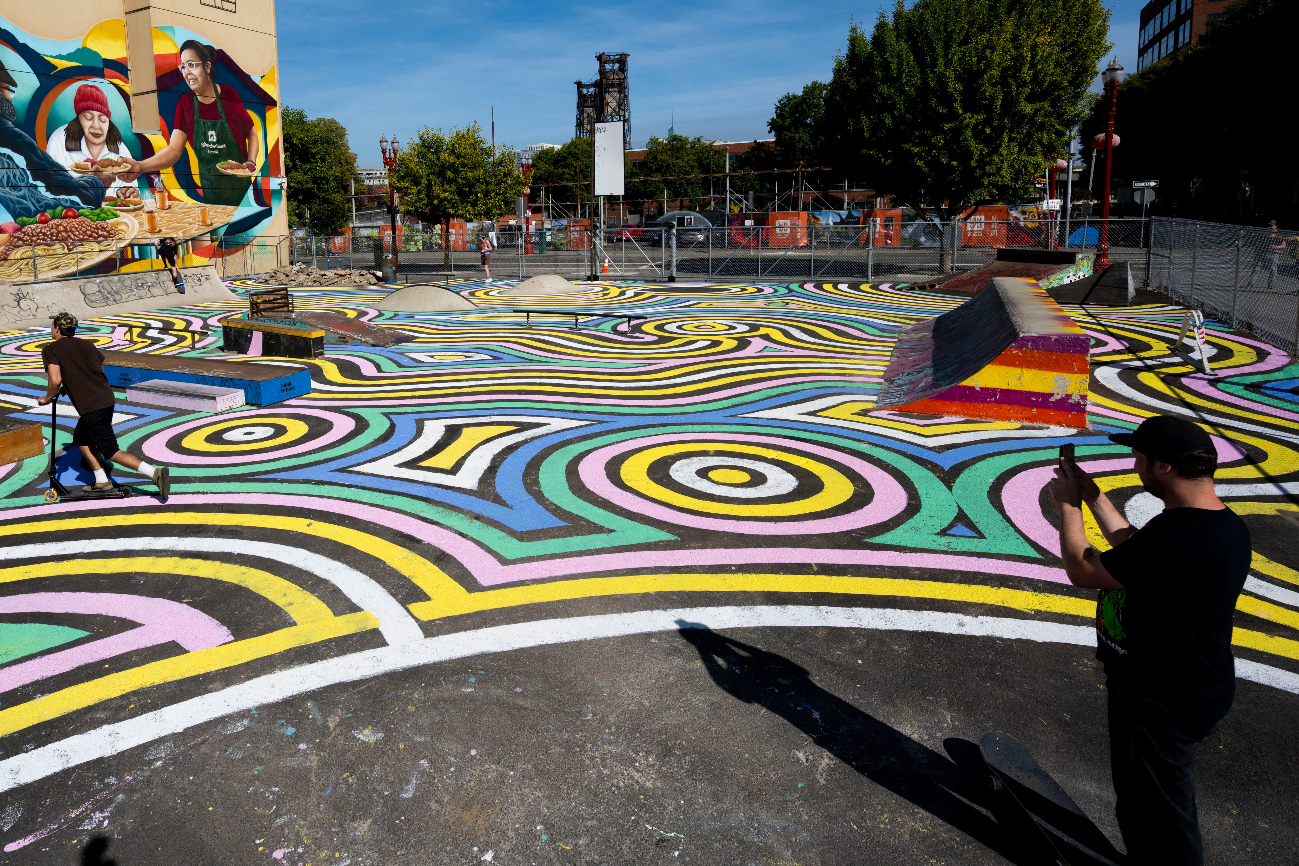 Business owners, nonprofits band together with the city to transform an old parking lot into a hot spot for skateboarders