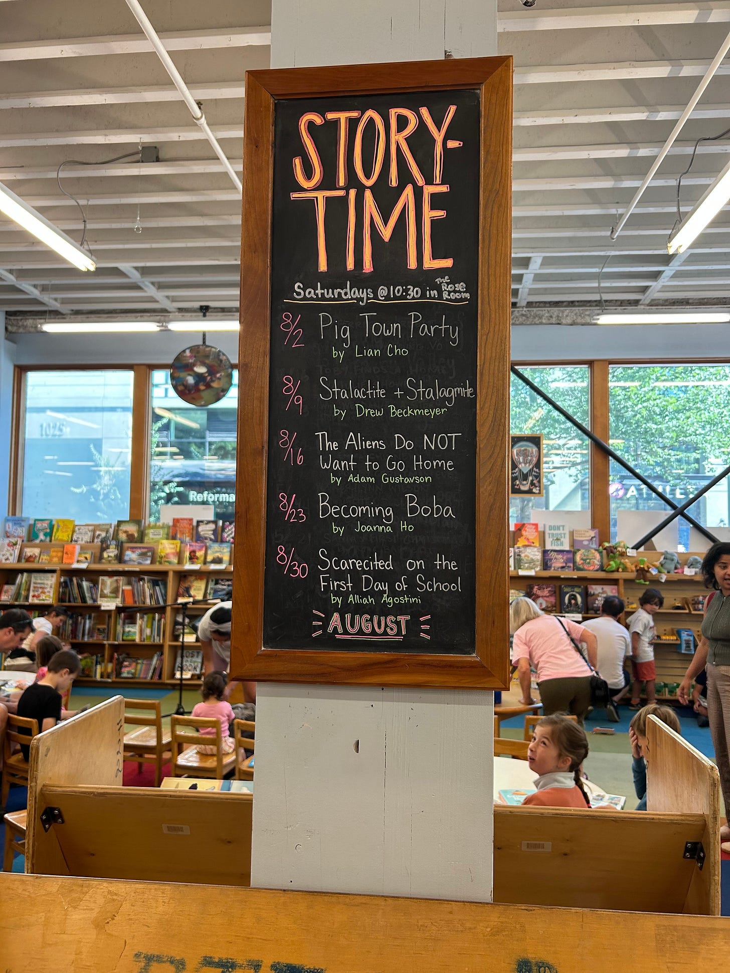 It’s Storytime in the Rose Room at Powell’s City of Books.