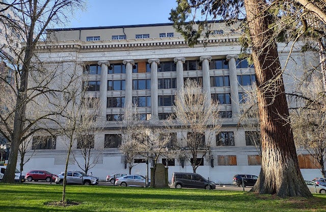 A Portland-based housing and real estate development firm headed by NBP Capital bought the old county building in 2018 and announced plans to convert it to office use. That plan evidently died with the COVID pandemic and the ensuing collapse of the downtown office market.