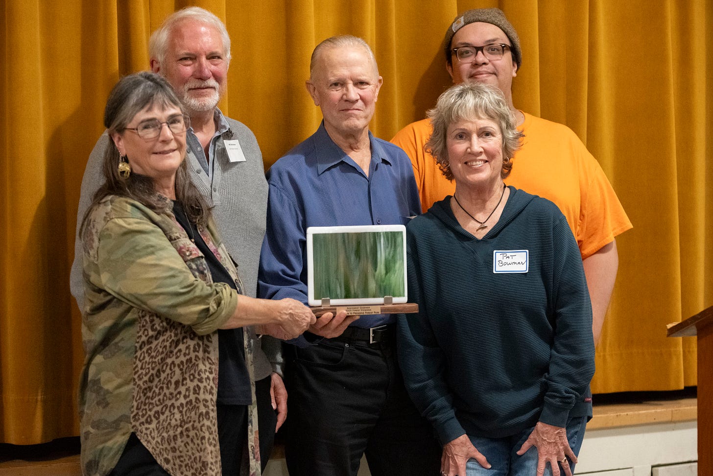 The Coalition to Preserve Forest Park brought together many allies to win a unanimous victory against Portland General Electric’s plan to extend power lines through Forest Park. Carole Hardy (L-R), Will Aitchison, Paul Majkut, Pat Bowman and Mikey Brooks.
