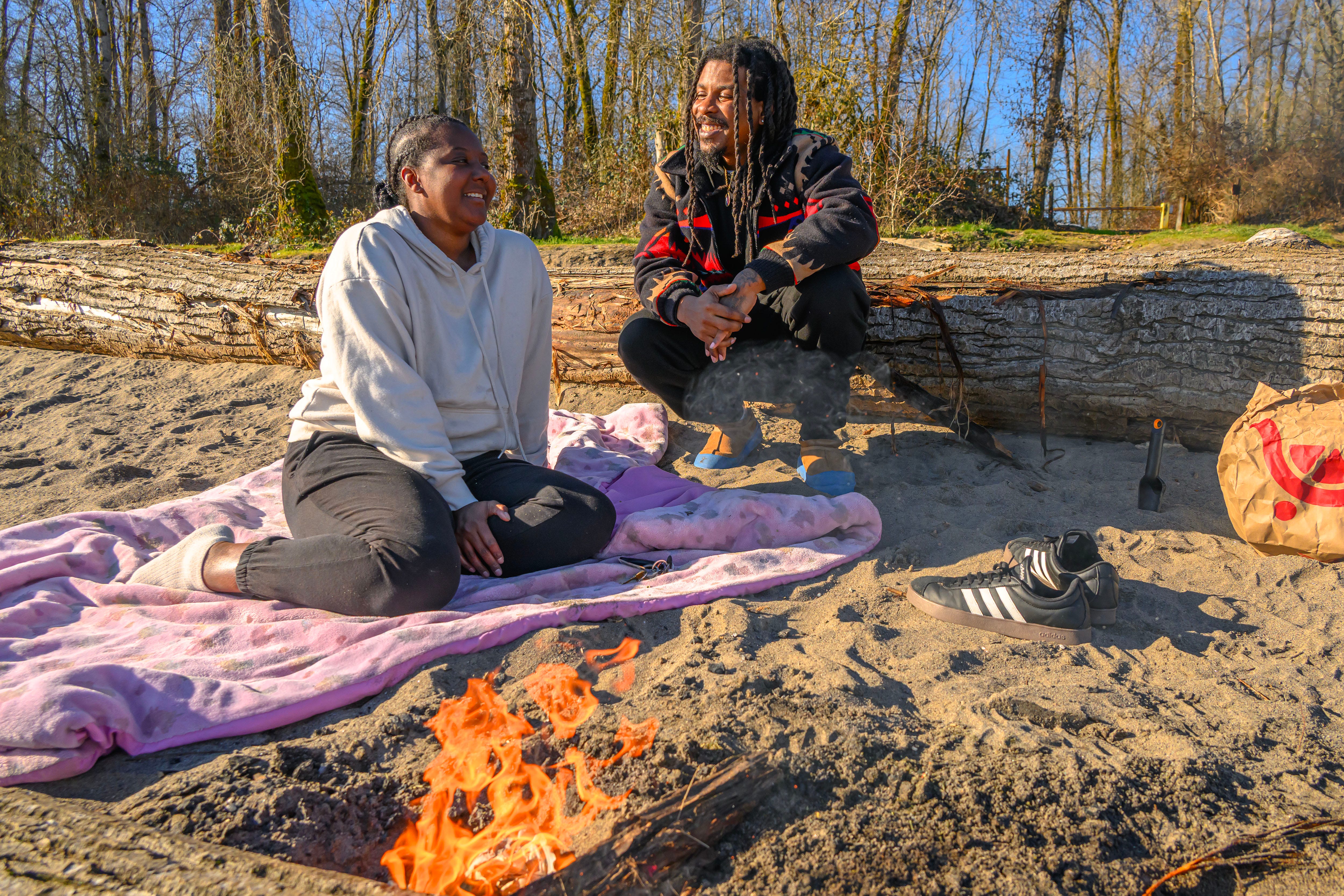 It looks like Alexandria and Jay Elliott had things perfectly dialed in the morning I bumped into them on a Sauvie Island beach, staying warm in 45-degree-ish weather with a fire they got going with some driftwood. The Elliotts have figured out something a lot of other local folks still haven’t. Sauvie Island can get mobbed in the summertime. Of the 800,000-plus visitors every year who traipse to the network of trails and beaches and the Sauvie Island Wildlife Area, just a scattering of folks come out during the winter. On the nearly entire day I spent photographing on the island, the Elliotts were the only ones I ran into just chilling and enjoying the place. The Elliotts say they’ve been coming out from Northeast Portland twice a week for about two years now —“sneaking away,” Alexandria told me, “when all four of our kids are in school.”